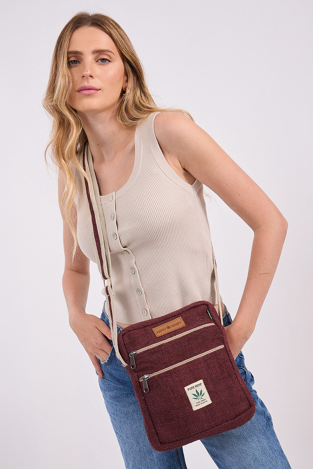 קולקציית תיקי הצד שלנו מיוצרים בעבודת יד מלאה מבד ההמפ.