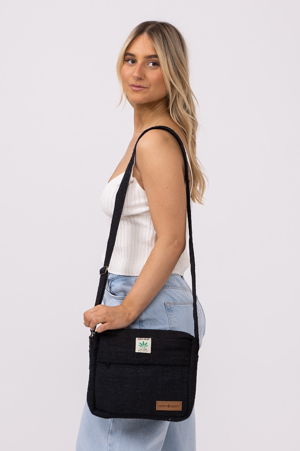 קולקציית תיקי הצד שלנו מיוצרים בעבודת יד מלאה מבד ההמפ.